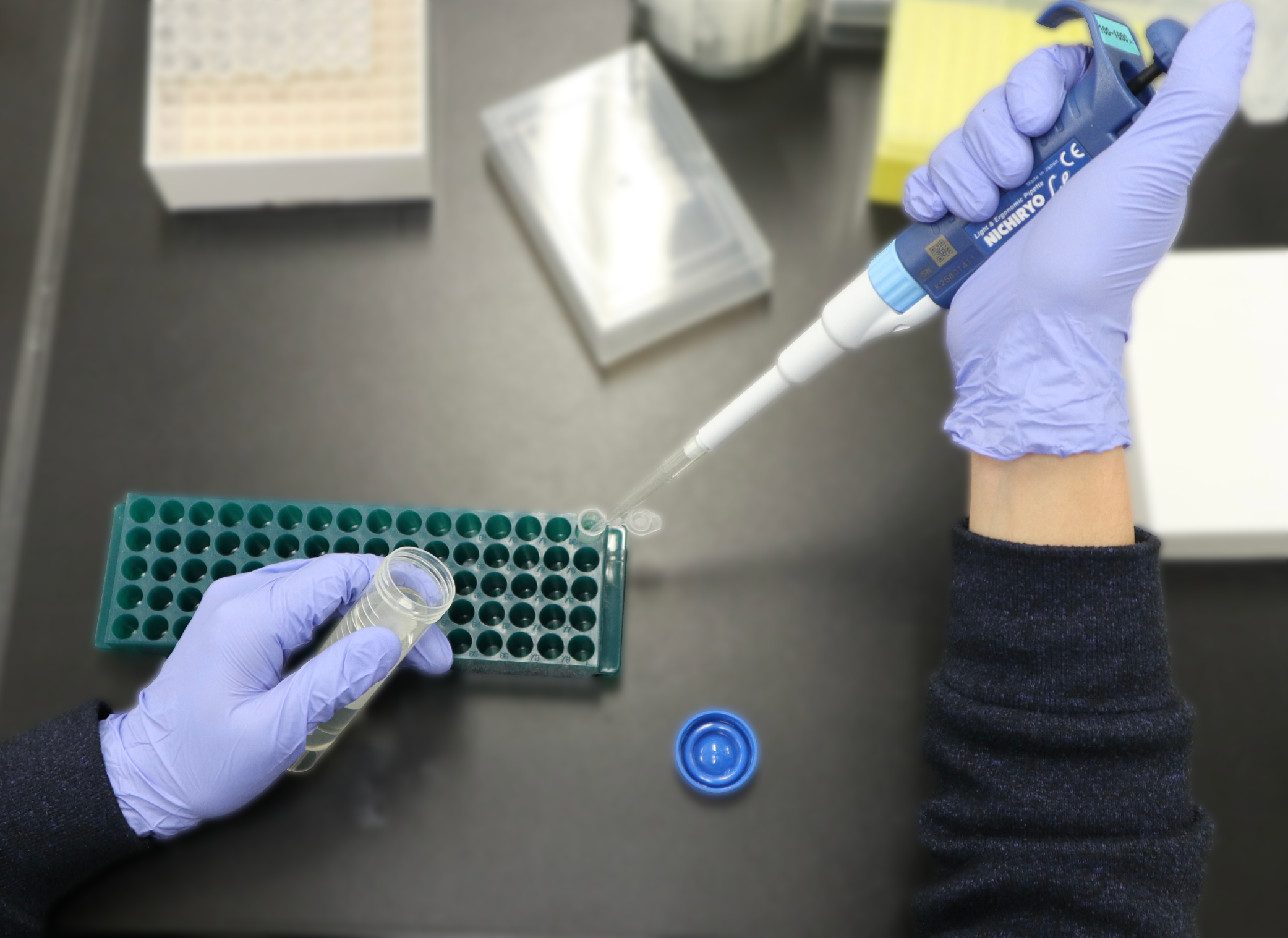 実験室において各種測定・分析装置を用いて表現型情報を集め、分子遺伝学的手法によって膨大な遺伝情報を収集します。